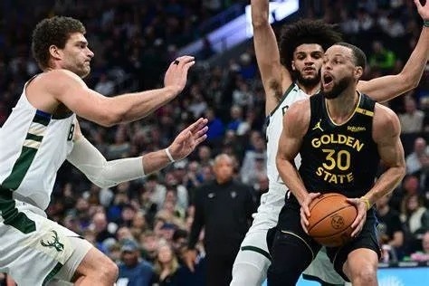 吉米自己背身拿球,讓雄鹿高塔洛佩斯得在意這一側;追夢內切,庫里突破直取洛佩斯。