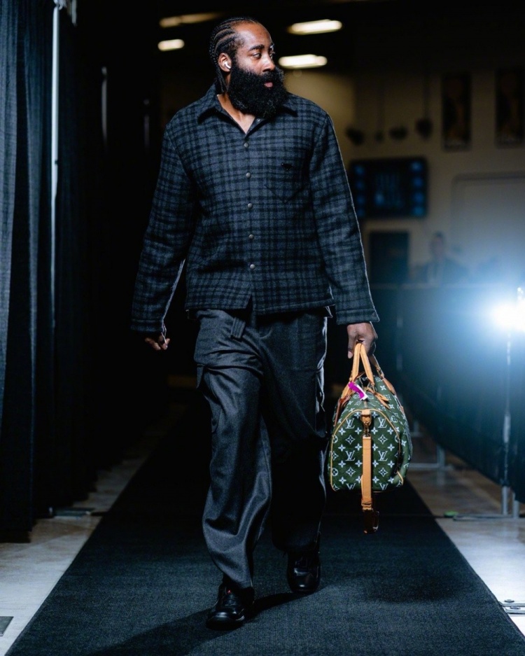 - 哈登今日穿暗色格子襯衫商務(wù)風(fēng) 小卡米色系 鮑威爾&祖巴茨穿短袖