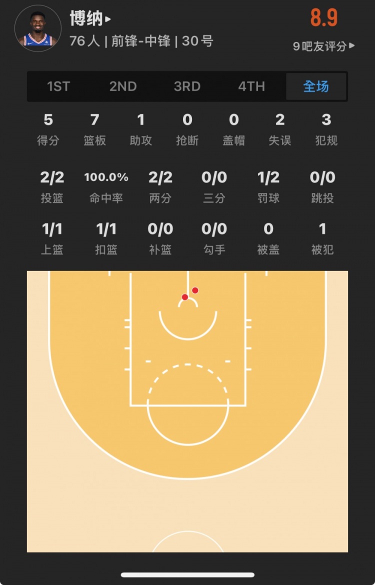 76人41號(hào)秀 阿德姆-博納 登場(chǎng)18.8分鐘