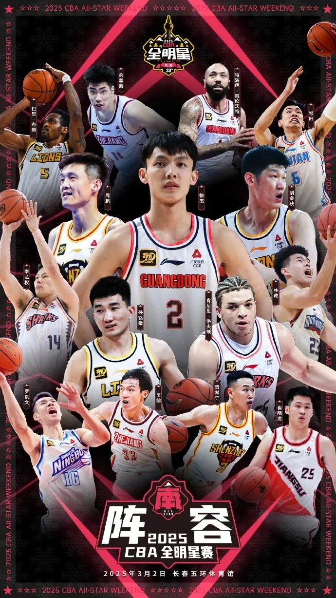 何為全明星賽?說(shuō)白了就是球星歡聚一堂給球迷們獻(xiàn)禮的比賽。顯然,CBA聯(lián)賽只讀懂了“歡聚一堂”這個(gè)詞。2025年CBA全明星周末正賽的名單是: