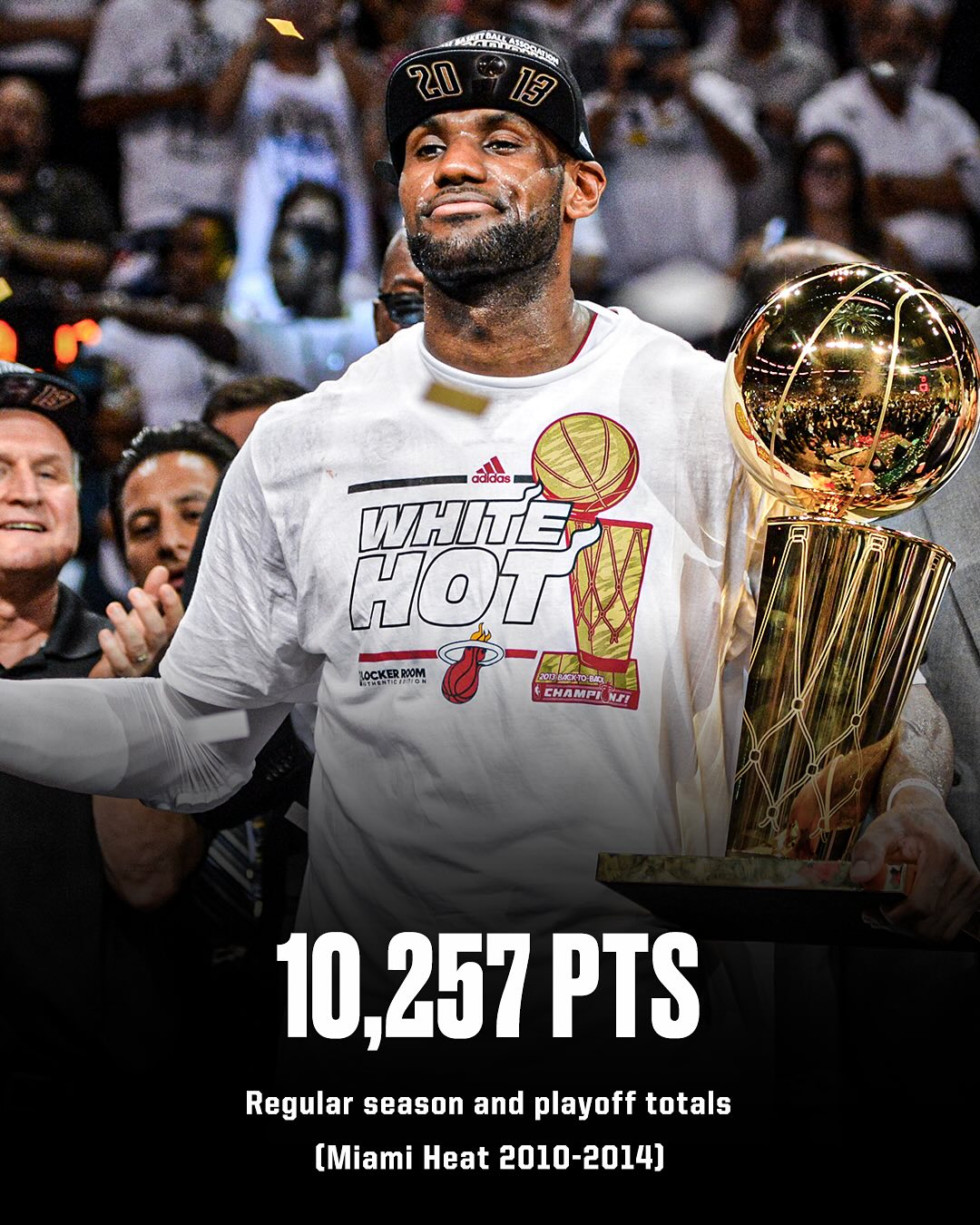 49999已斷檔領(lǐng)先!詹姆斯職業(yè)生涯四隊總得分分布 熱火時期最少