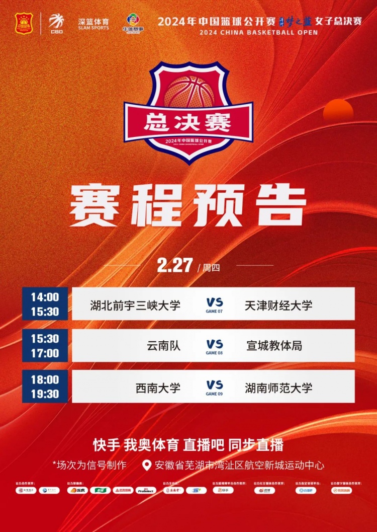 2月26日,2024年中國籃球公開賽洋河夢之藍女子總決賽繼續(xù)在安徽省蕪湖市灣沚區(qū)航空新城運動中心進行。在第二輪結束的三場比賽中,天津財經大學、湖北前宇三峽大學收獲首場勝利,云南隊力克湖南師范大學取得兩連勝。