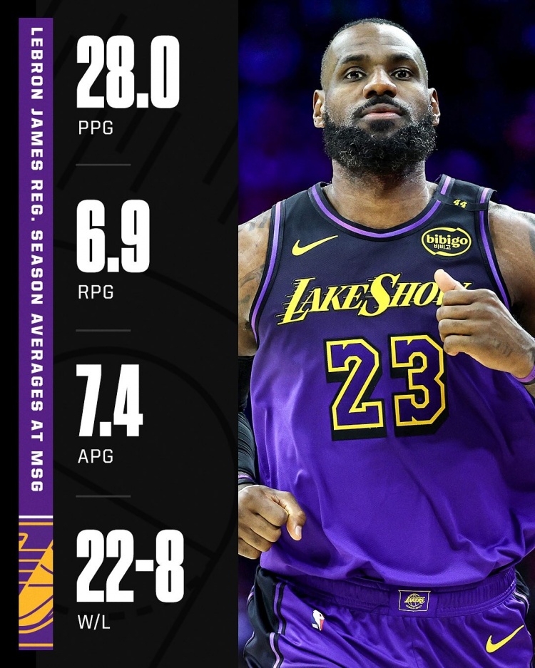 - 后天如何?詹姆斯生涯做客麥迪遜花園22勝8負 場均28分6.9板7.4助