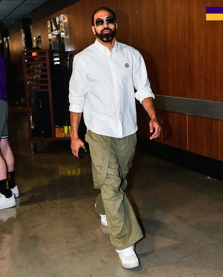 - 湖人入場(chǎng)照:范德比爾特潮裝酷酷 東契奇胡子很長(zhǎng)&文總墨鏡惹眼