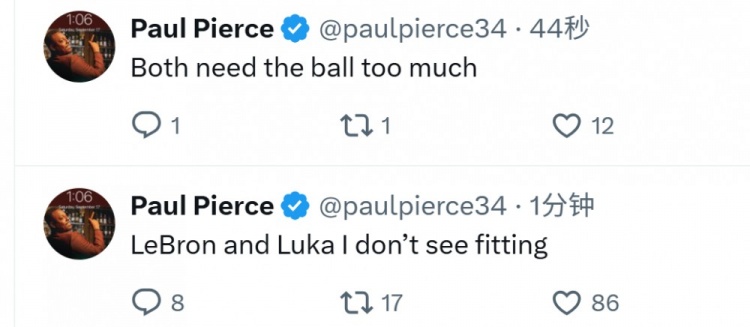 名宿皮爾斯發(fā)推寫(xiě)道:“我認(rèn)為詹姆斯和東契奇不合適,他倆都需要大量持球?!?/p>