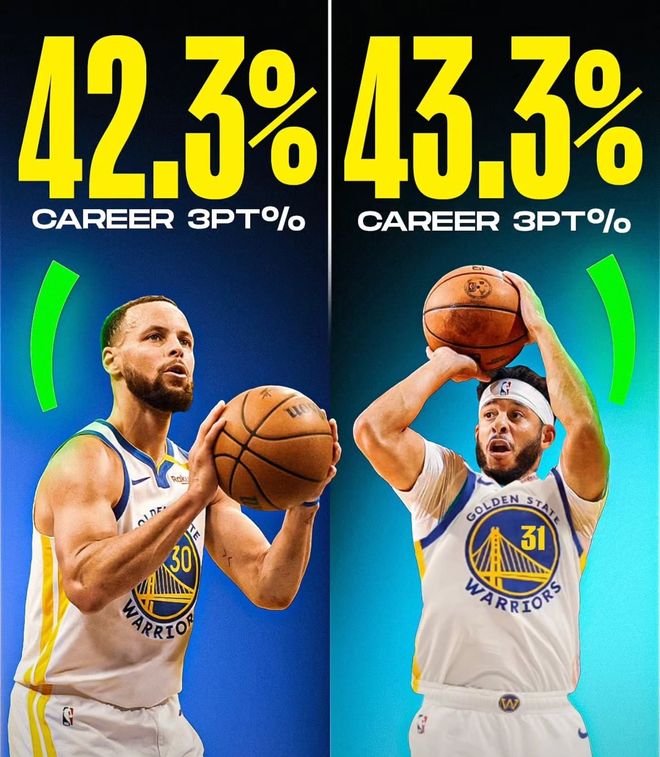 據(jù)NBA數(shù)據(jù)統(tǒng)計(jì):塞斯·庫(kù)里的生涯三分命中率比斯蒂芬·庫(kù)里還要高。