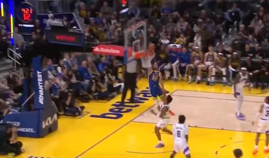 在第三節(jié)庫里迎來爆發(fā),他單節(jié)8中6爆砍20分2助攻,三分球6中4,罰球4中4,甚至在第三節(jié)還完成了一次空切單手勉扣,引爆全場。
