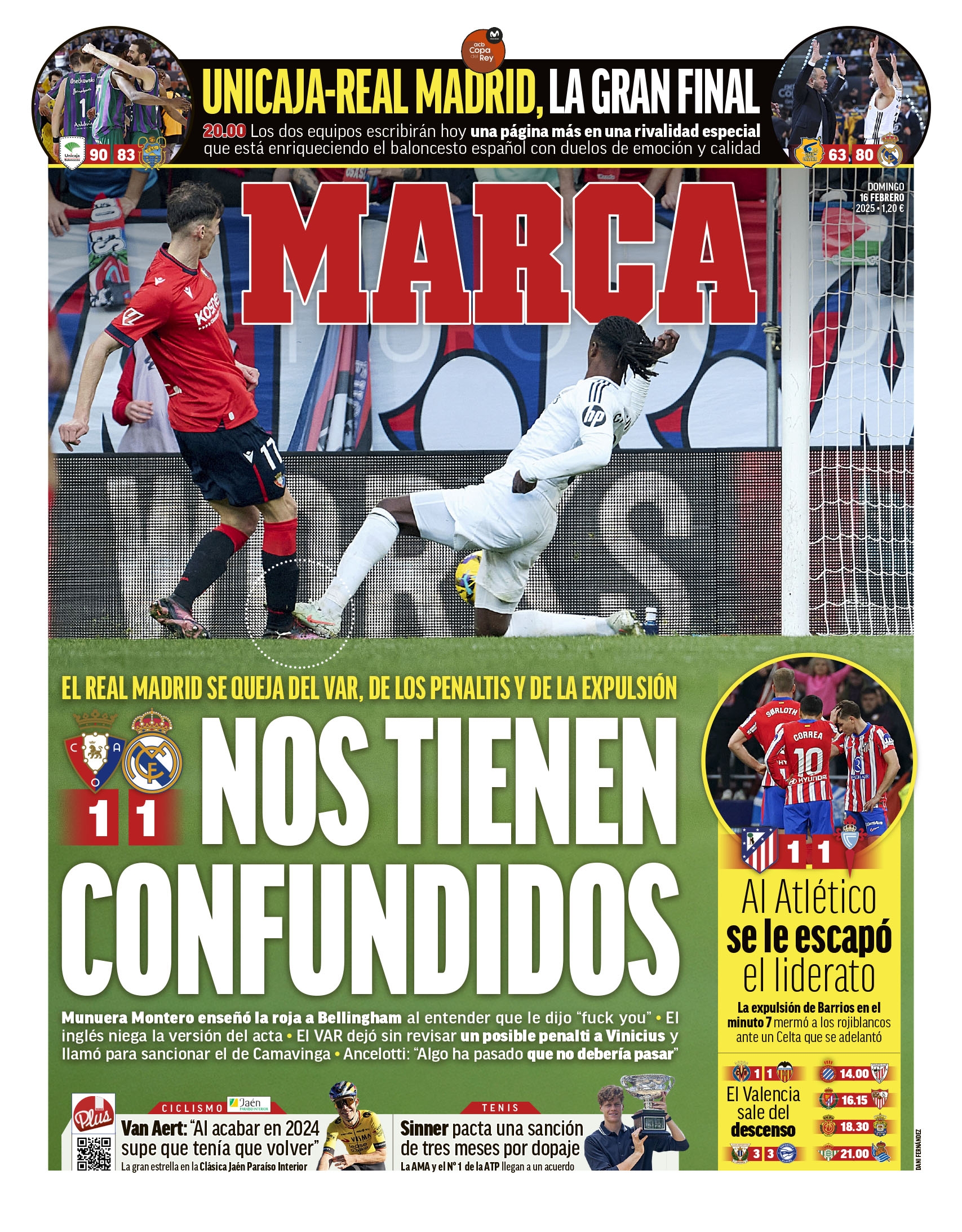 馬卡報(bào)頭版聚焦皇馬vs奧薩蘇納爭議判罰:令我們困惑