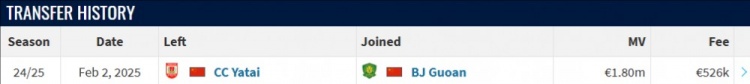 德轉(zhuǎn)信息顯示,塞爾吉尼奧加盟國(guó)安的轉(zhuǎn)會(huì)費(fèi)為52.6萬(wàn)歐