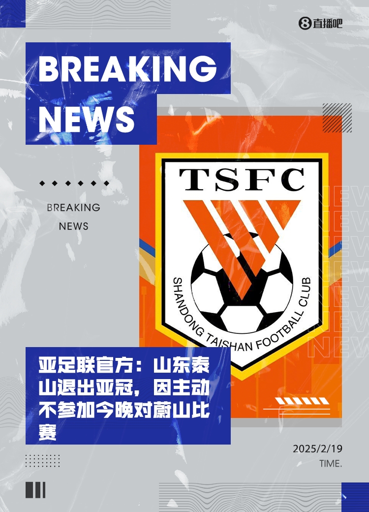 根據(jù)《亞足聯(lián)冠軍聯(lián)賽精英賽2024/25競賽規(guī)程》(簡稱"競賽規(guī)程")第5.2條款規(guī)定,亞足聯(lián)確認(rèn)中國山東泰山足球俱樂部因明確表示不參加原定于2025年2月19日與韓國蔚山HD足球俱樂部進(jìn)行的東亞區(qū)聯(lián)賽階段賽事,現(xiàn)被視為退出本屆亞足聯(lián)冠軍聯(lián)賽精英賽。