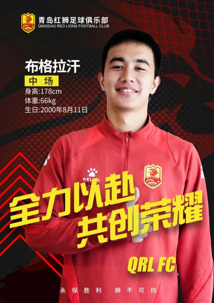 布格拉汗-斯坎旦爾,出生于2000年8月11日,身高178cm,體重66kg,場上司職前鋒。這位來自新疆的小伙子早在2019賽季就隨廣州恒大淘寶奪得中超聯(lián)賽冠軍;2021-2022年作為滄州雄獅的球員,在中超聯(lián)賽中同樣表現(xiàn)出色;2023賽季轉會回到廣州隊征戰(zhàn)中甲聯(lián)賽,出場25場,收獲5粒進球和5次助攻。期待布格拉汗在青島紅獅能延續(xù)自己的精彩表現(xiàn),為球隊進攻線再添戰(zhàn)力!