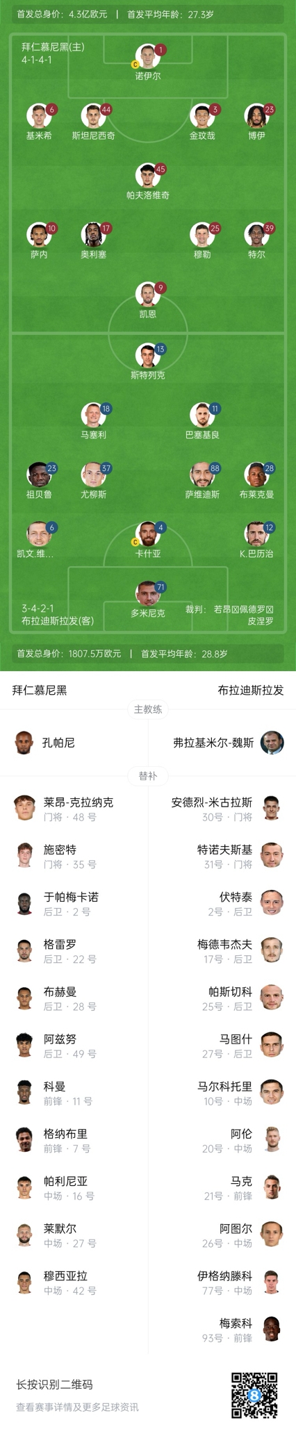 1月30日訊 歐冠聯(lián)賽階段第8輪,拜仁慕尼黑坐鎮(zhèn)主場安聯(lián)競技場迎戰(zhàn)布拉迪斯拉發(fā),賽前首發(fā)名單公布。