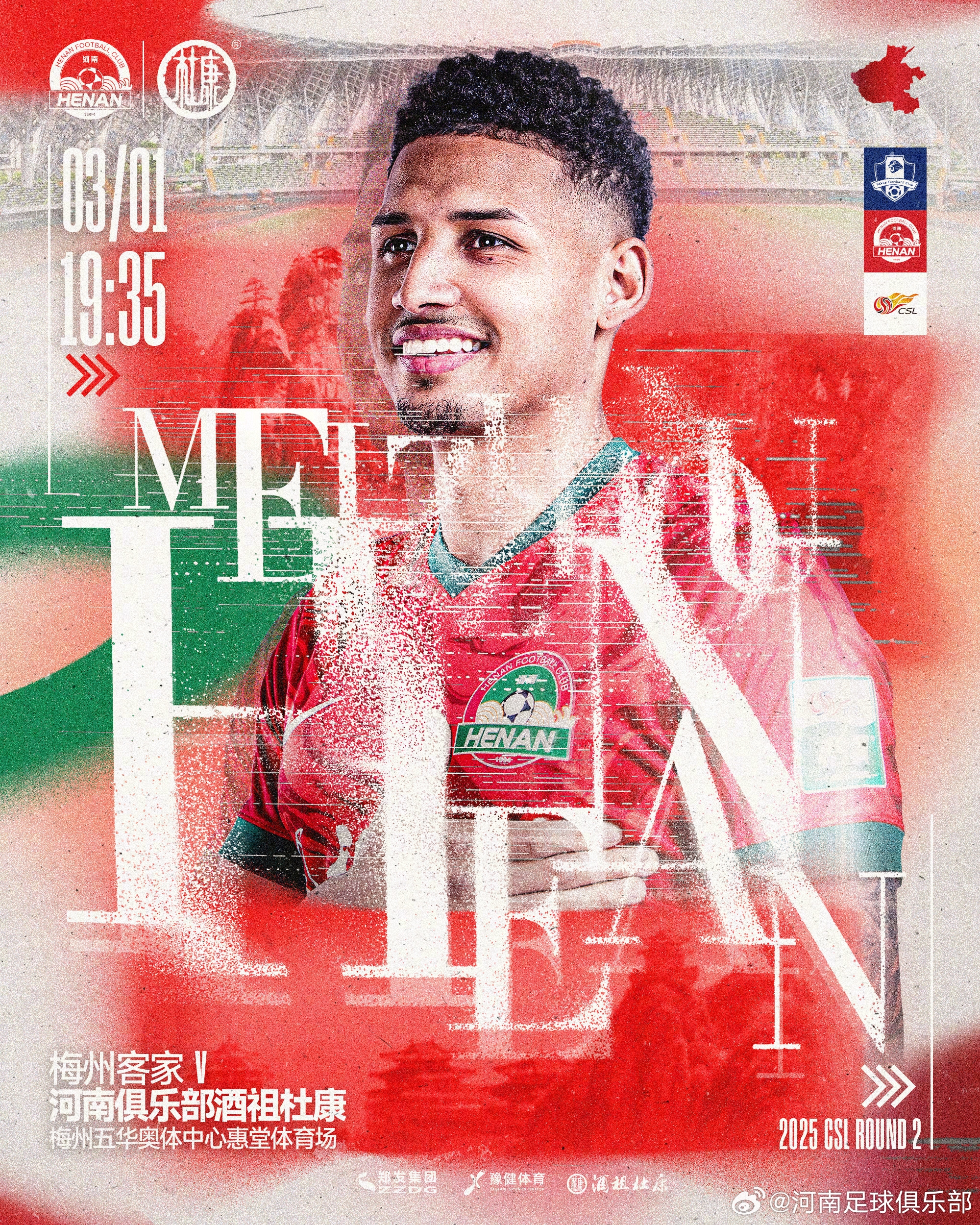 03月01日訊 北京時(shí)間今晚19:35,中超第2輪,梅州客家坐鎮(zhèn)主場(chǎng)五華奧體中心惠堂體育場(chǎng),迎戰(zhàn)河南隊(duì),賽前官方公布首發(fā)陣容。