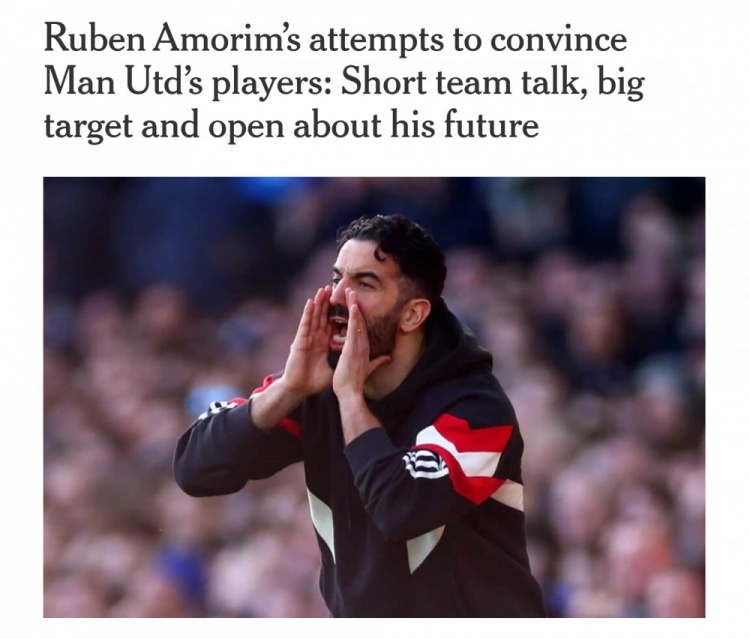 自11月上任以來(lái),阿莫林嘗試了多種與球員溝通的方式。在古迪遜公園球場(chǎng)逼仄的更衣室里,他選擇了使用簡(jiǎn)明扼要的表達(dá)方式。當(dāng)時(shí)曼聯(lián)0-2落后埃弗頓,正經(jīng)歷賽季最糟糕的比賽狀態(tài),但阿莫林沒(méi)有進(jìn)行冗長(zhǎng)的戰(zhàn)術(shù)講解。