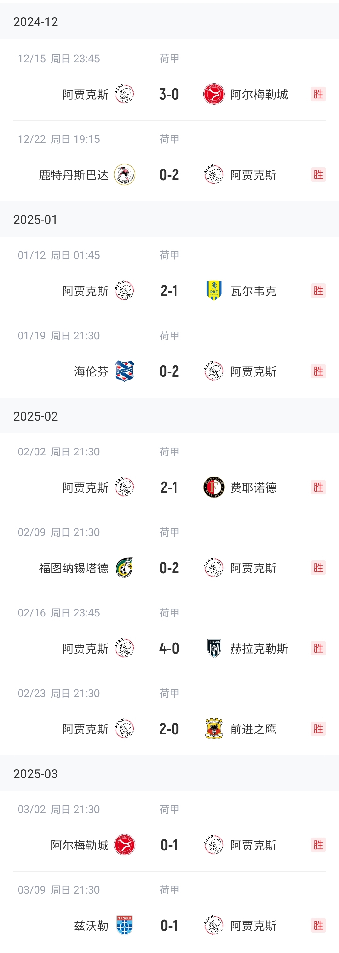 本賽季在35歲的意大利少帥法雷奧利的帶領(lǐng)下,阿賈克斯還剩9輪8分領(lǐng)跑荷甲積分榜,有望時(shí)隔2個(gè)賽季重奪荷甲冠軍。