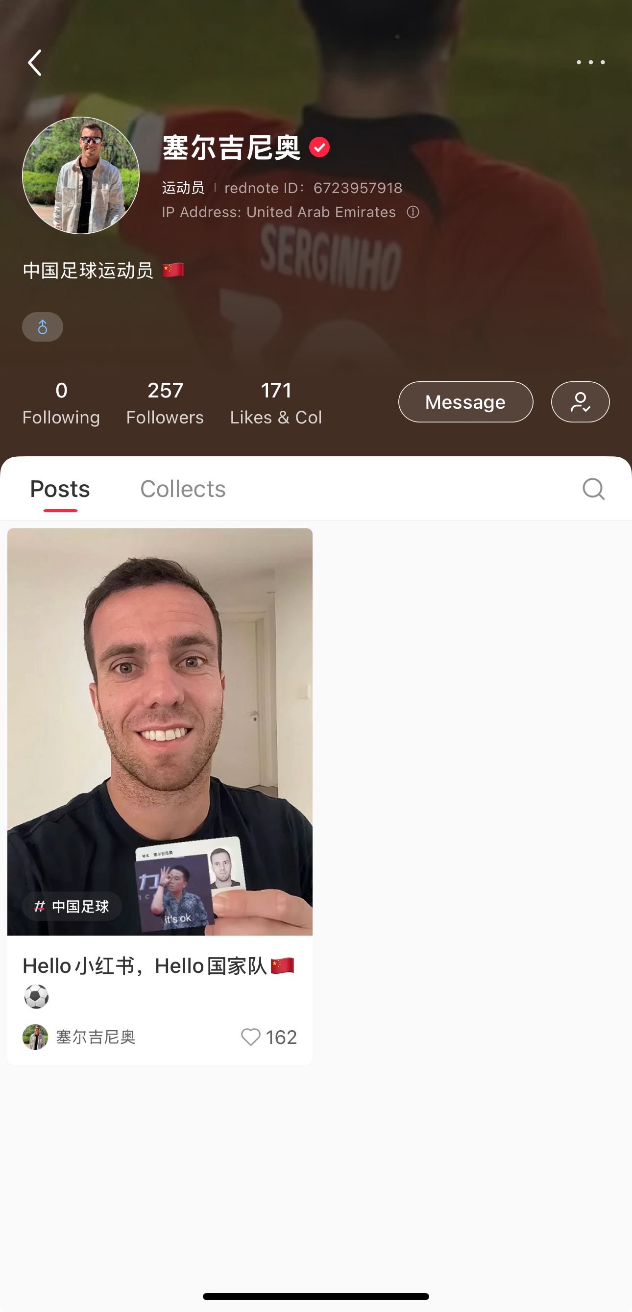 03月13日訊 塞爾吉尼奧在社交媒體曬出了個人身份證,配文我是中國足球運動員塞爾吉尼奧!IP地址顯示塞爾吉尼奧已經(jīng)抵達阿聯(lián)酋。
