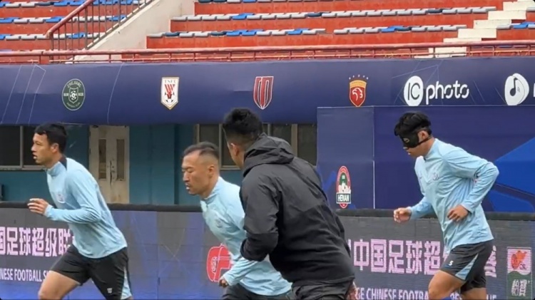 3月28日訊 申花今天進(jìn)行賽前踩場(chǎng)訓(xùn)練,中衛(wèi)朱辰杰戴面具參加。