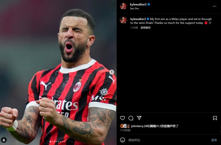沃克寫道:作為米蘭球員的首場勝利,我們晉級了半決賽!非常感謝大家今天的支持。