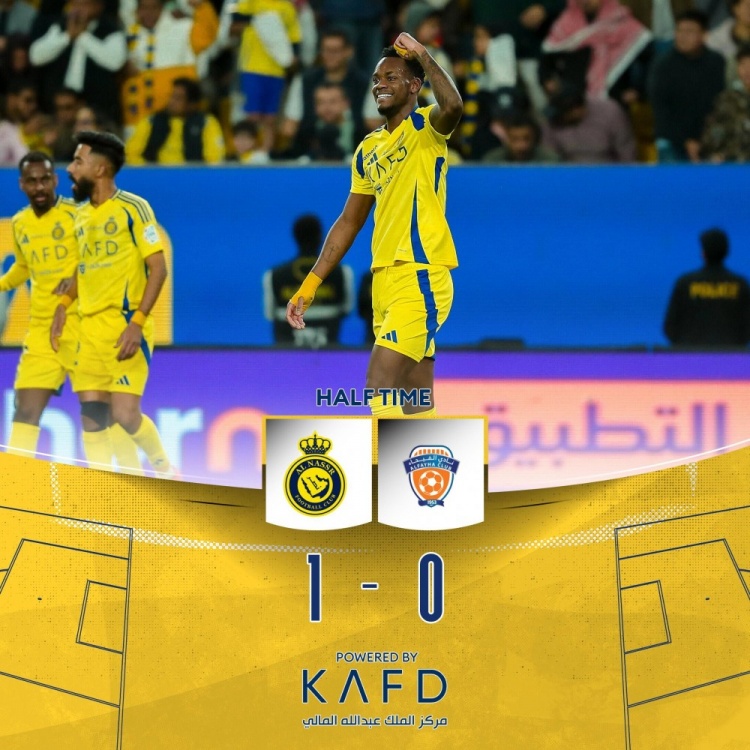 半場戰(zhàn)罷,利雅得勝利暫1-0費哈。